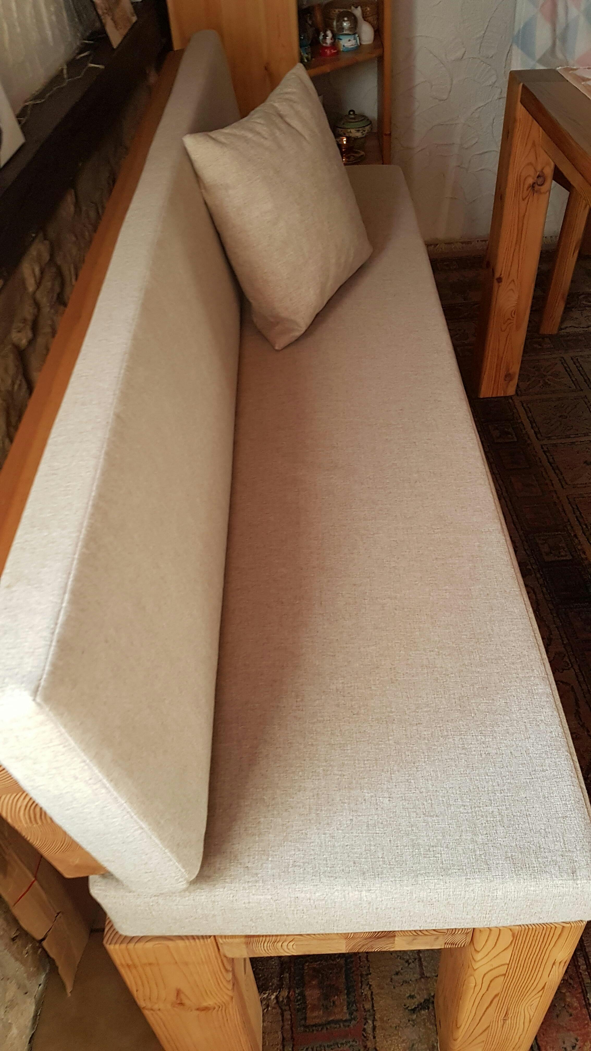 Ich habe lange überlegt, ob ich bei Zotra bestelle. Ich habe im Internet gesucht und gesucht, aber zum Teil waren die Bewertungen ungenügend. Dann nach langem habe ich ZOTRA entdeckt, und ich muss sage, dass ich gleich begeistert war. Meine Bilder sind nicht so toll, aber das Bankkissen mit Rückenlehne um so toller. Ich bin sehr zufrieden, alles wie abgemessen und super verarbeitet, es passt genau.