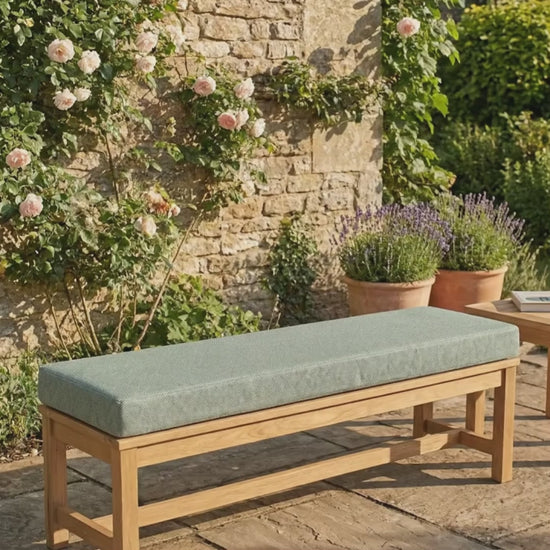 - Temperatur-Regulierung: Unser spezieller Outdoor-Stoff (Olefin) absorbiert kaum Wärme. Selbst wenn die Bank in der prallen Sonne steht, verbrennst du dir nicht die Beine.